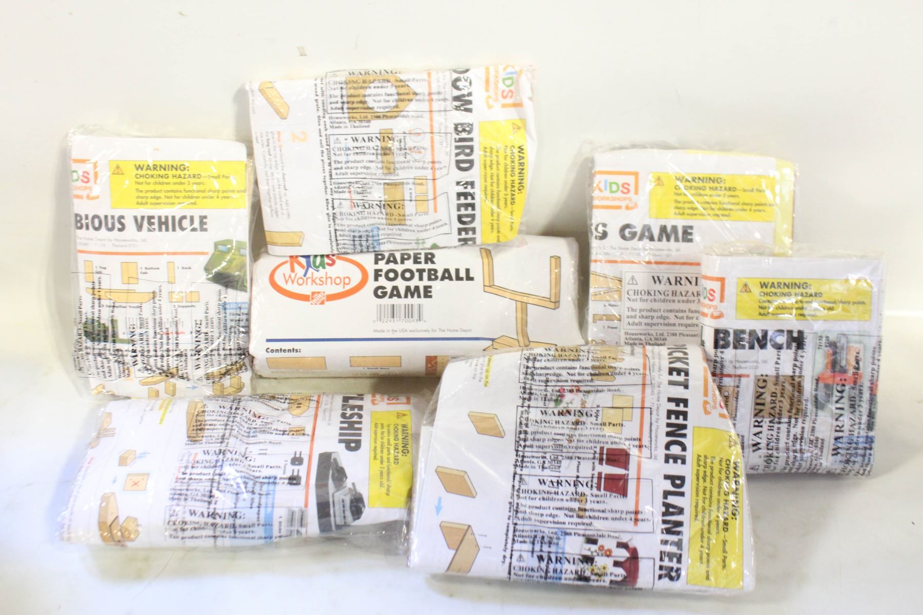 WORKSHOP WINDOW BIRD FEEDER, PAPER FOOTBALL GAME, TOSS GAME, TOOL BENCH, PICKET FENCE PLANTER'S, BATTLESHIP, AMPHIBIOUS VEHICLE