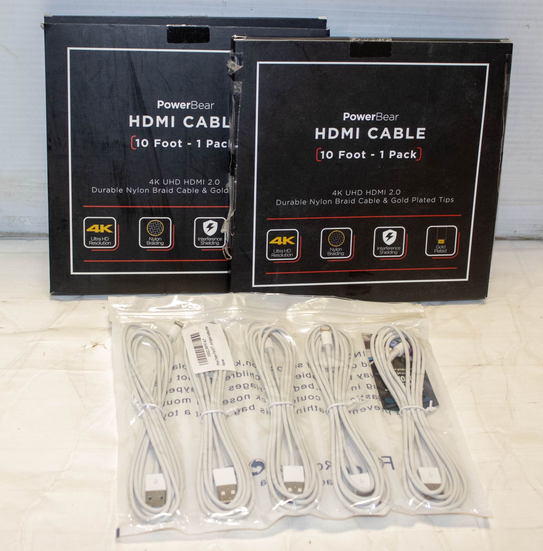 2 X 10FT 4K UHD HDMI 2.0 DURABLE NYLON BRAID CABLE & GOLD PLATED TIPS AND 1 5 PACK LIGHTNING CABLE CORDS 6FT **ALL ITEMS MUST BE REMOVED BY 5PM SATURDAY, DECEMBER 16TH 2023. ALL REMAINING ITEMS WILL BE SUBJECT TO A $6.00 PER DAY STORAGE CHARGE. ANY ITEMS REMAINING AFTER TUESDAY, JANUARY 2ND 2023 WILL BE CONSIDERED FORFEITED. NO REFUNDS WILL BE ISSUED FOR FORFEITED ITEMS. TO SCHEDULE A PICK UP APPOINTMENT CLICK HERE