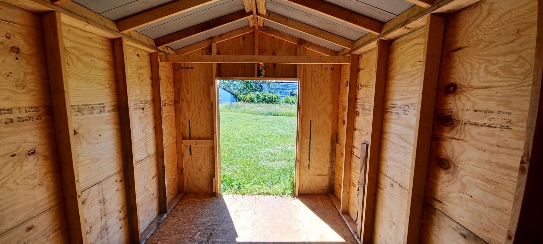 NEW 8 FT X 12 FT X X8FT HIGH SHED ON SKIDS C/W METAL ROOF