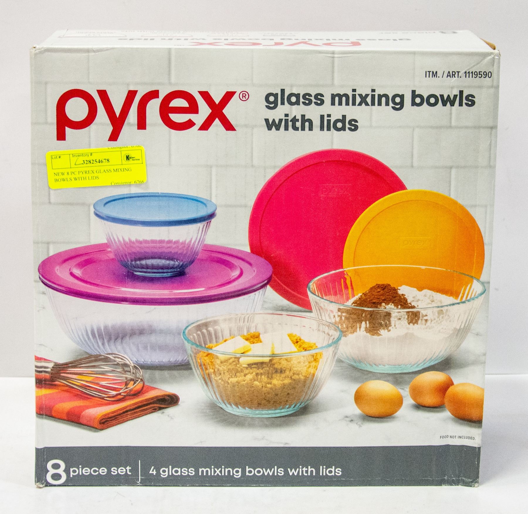 NEW 8 PC PYREX GLASS MIXING BOWLS WITH LIDS