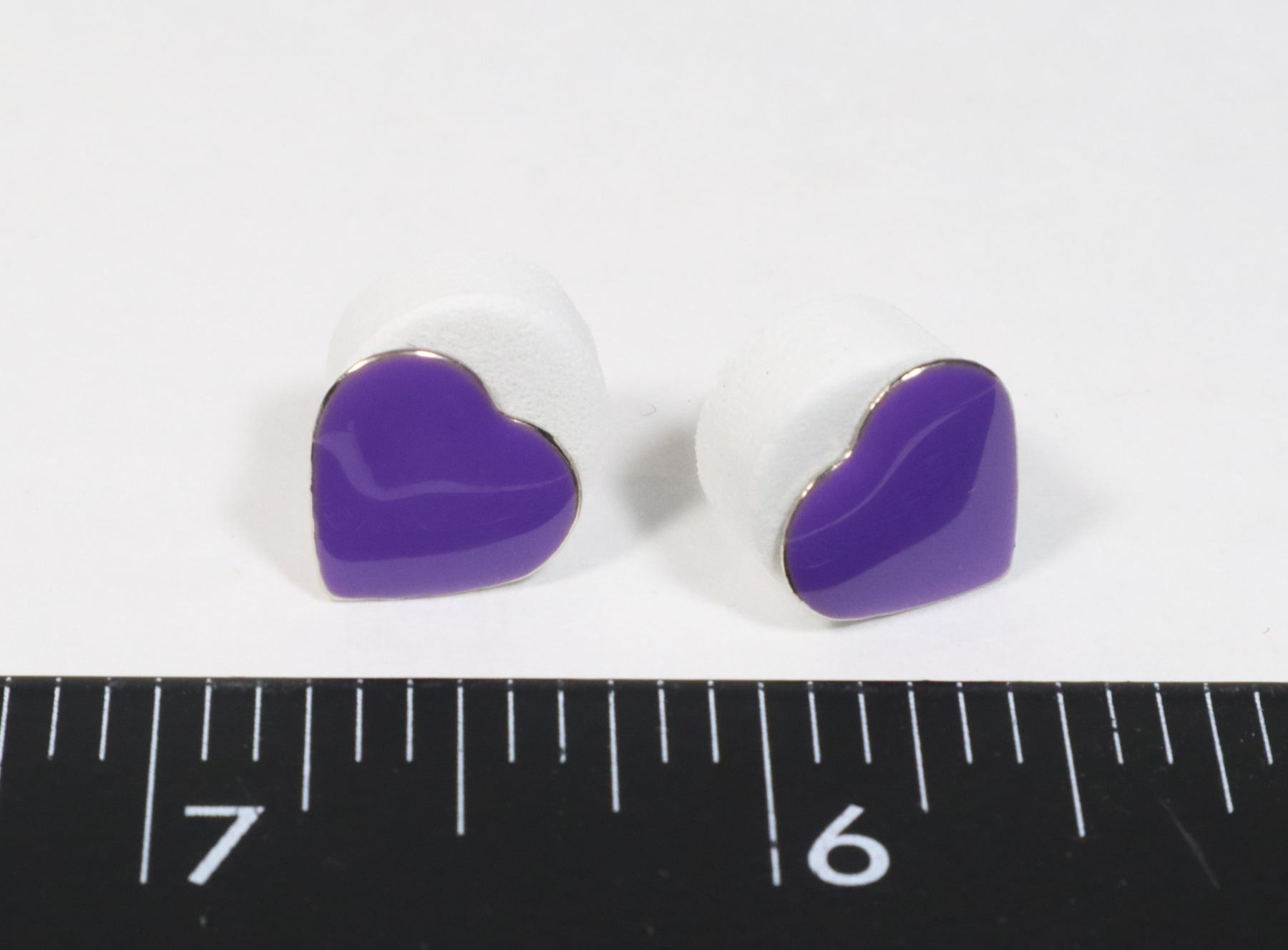 NEW 80'S STYLE PURPLE HEART STUD EARRINGS