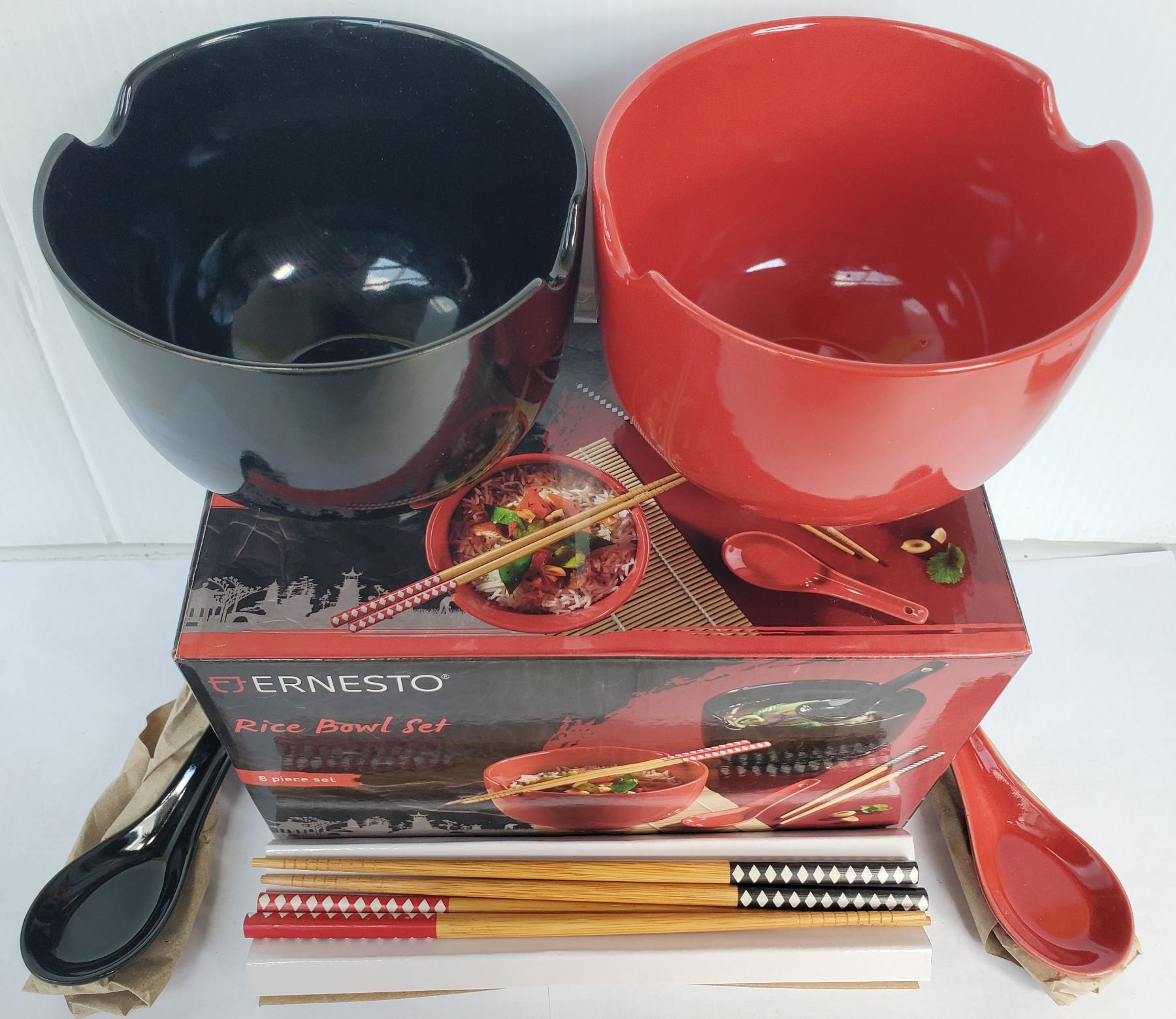 STONEWARE BOWLS & SPOONS, VARNISHED BAMBOO CHOPSTICKS. DISHWASHER SAFE, NEW IN BOX **ALL ITEMS MUST BE REMOVED BY 5PM SATURDAY, JULY 20TH 2024. ALL REMAINING ITEMS WILL BE SUBJECT TO A $6.00 PER DAY STORAGE CHARGE. ANY ITEMS REMAINING AFTER MONDAY, AUGUST 5TH 2024 WILL BE CONSIDERED FORFEITED. NO REFUNDS WILL BE ISSUED FOR FORFEITED ITEMS. TO SCHEDULE A PICK UP APPOINTMENT CLICK HERE
