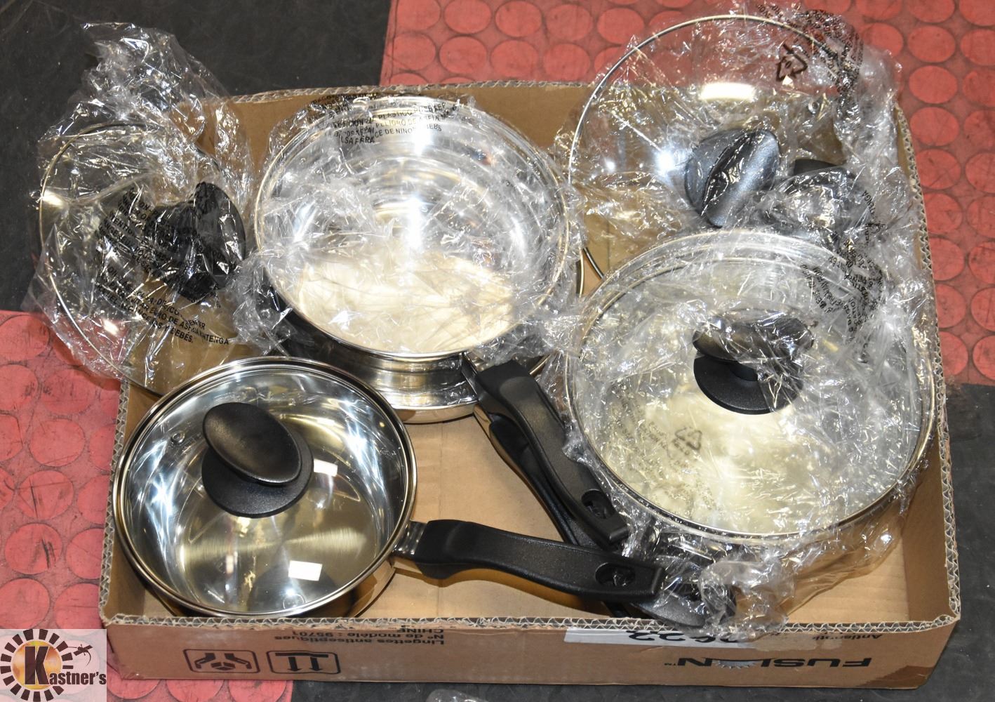 NEW 8PC STAINLESS STEEL POT SET ( BOX DAMAGED )