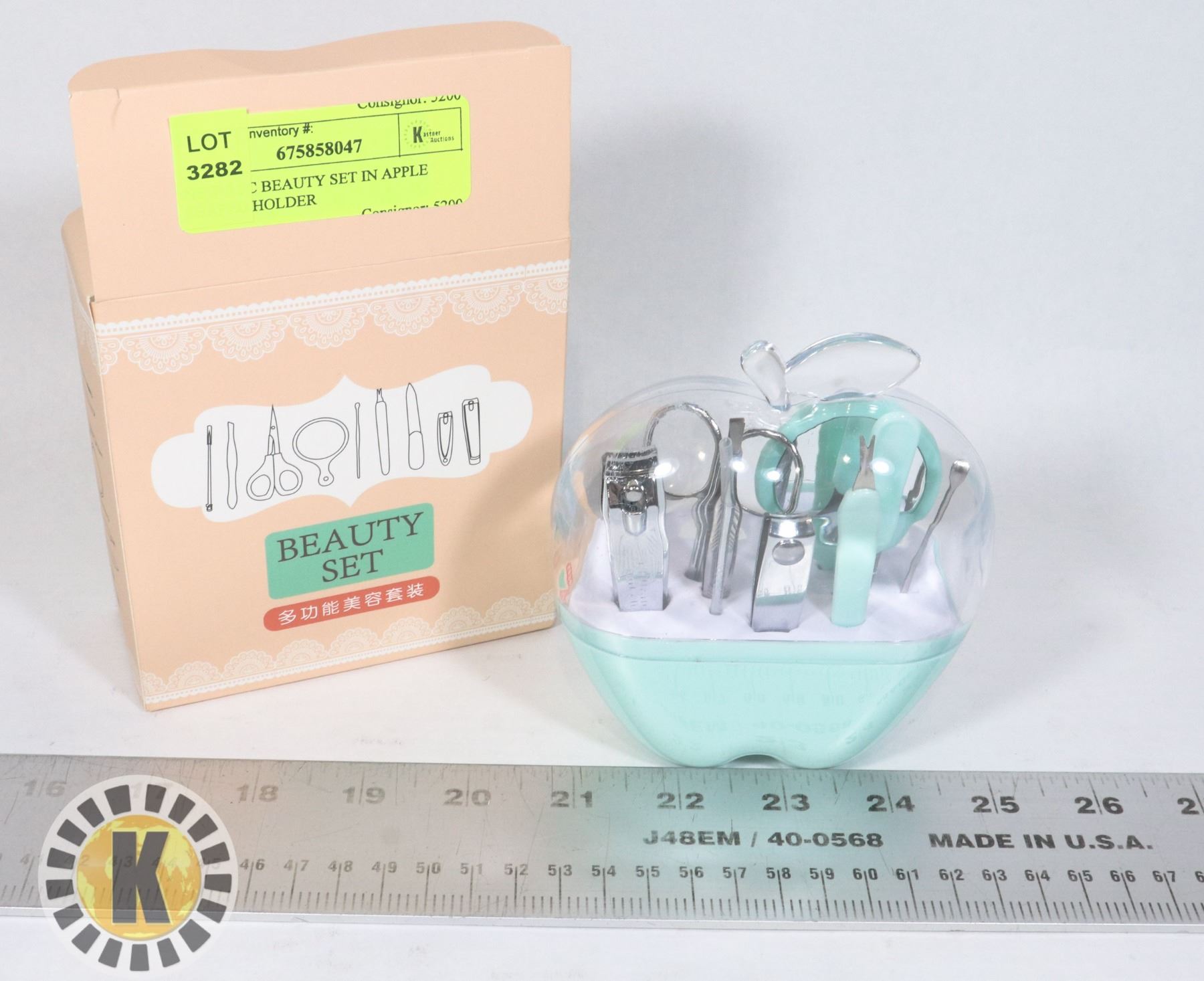NEW 9 PC BEAUTY SET IN APPLE SHAPED HOLDER