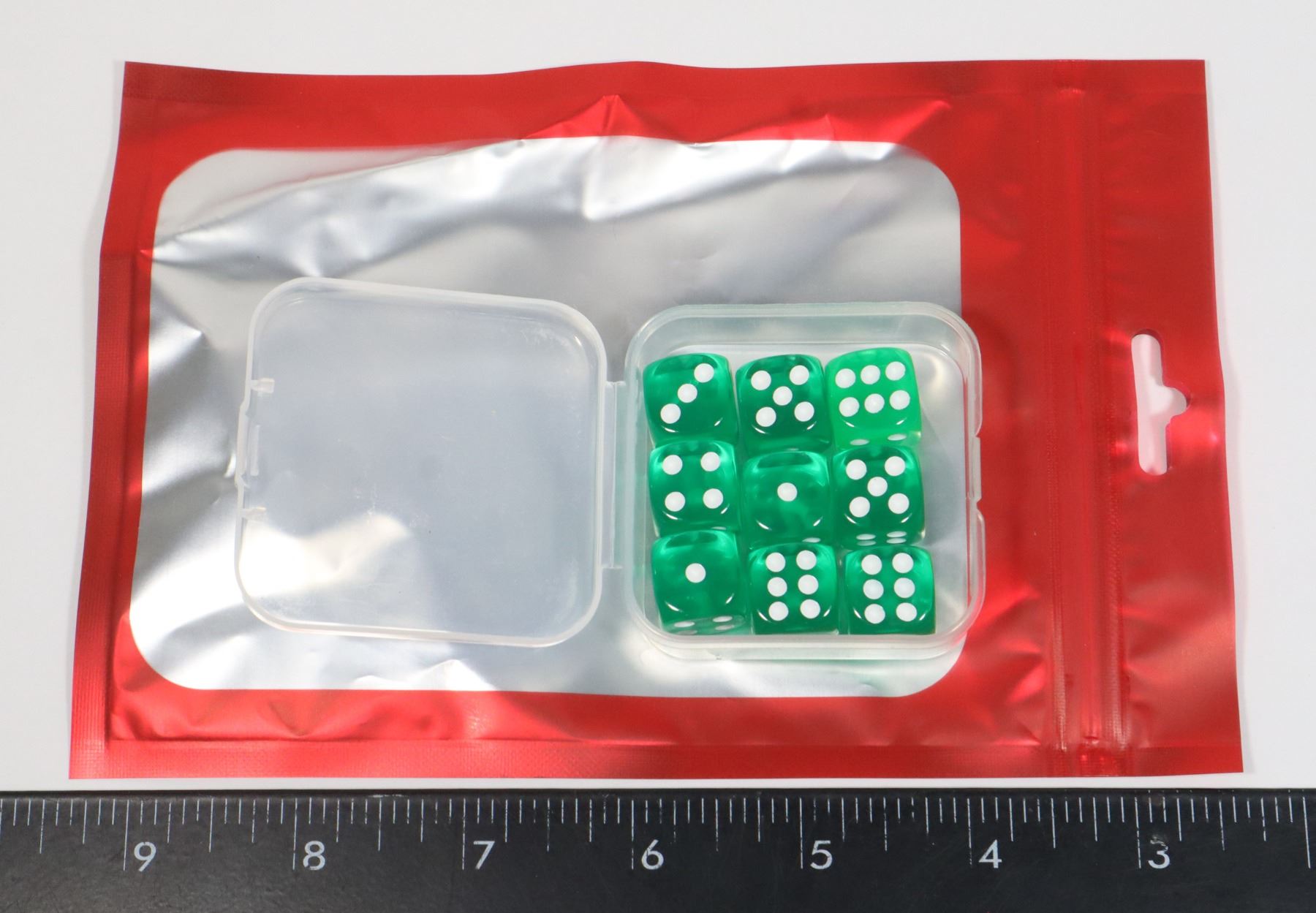 NEW 9 PC SET SIX SIDED GREEN DICE IN CARRYING BOX