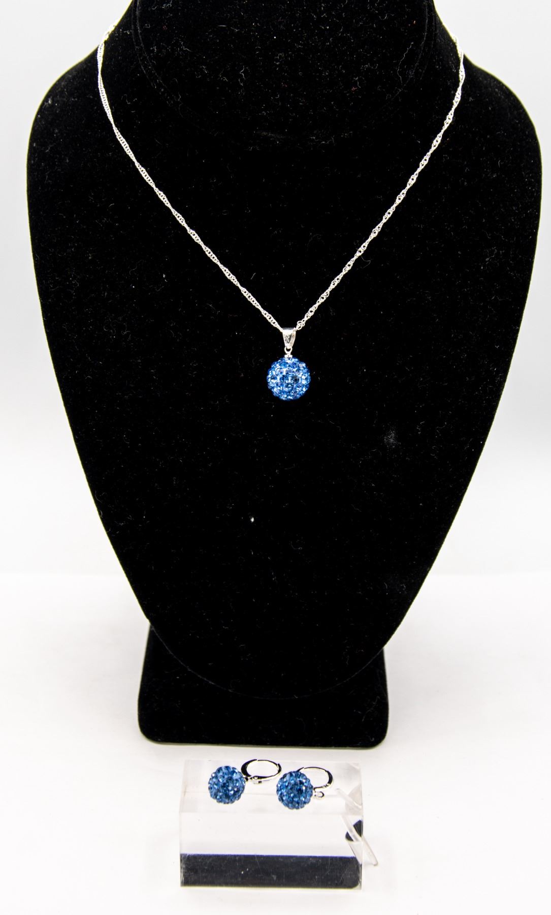 PENDANT (ON .925 SILVER CHAIN) EARRINGS SET BLUE STONES **ALL ITEMS MUST BE REMOVED BY 5PM SATURDAY, MARCH 4TH 2023. ALL REMAINING ITEMS WILL BE SUBJECT TO A $6.00 PER DAY STORAGE CHARGE. ANY ITEMS REMAINING AFTER MONDAY, MARCH 20TH, 2023 WILL BE CONSIDERED FORFEITED. NO REFUNDS WILL BE ISSUED FOR FORFEITED ITEMS. TO SCHEDULE A PICK UP APPOINTMENT CLICK HERE
