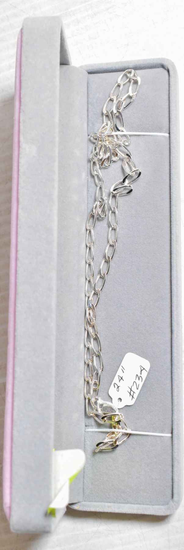 NEW 925 STERLING SILVER 24" NECKLACE, HIGH QUALITY ITALY MADE, PINK & GREY VELVET CASE - NONE