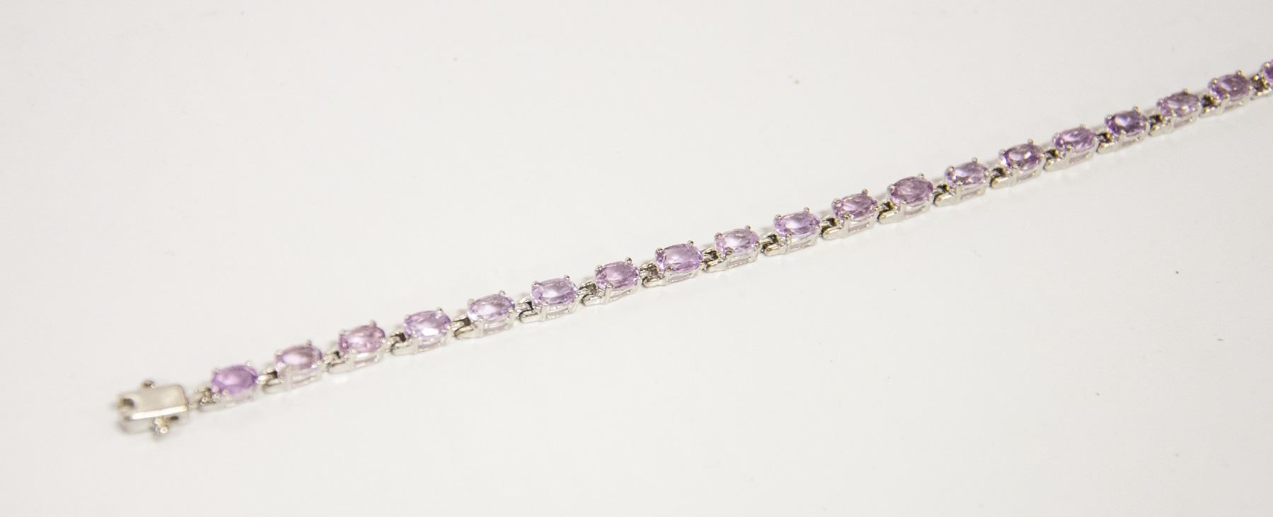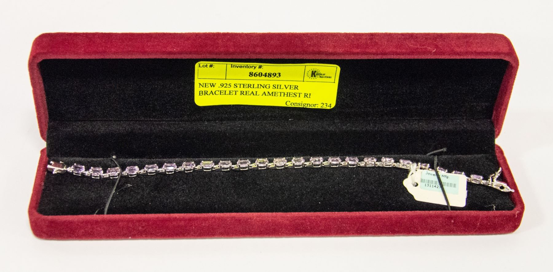 NEW .925 STERLING SILVER BRACLET REAL AMETHEST STONES, RETAIL $382, IN RED VELVET CASE