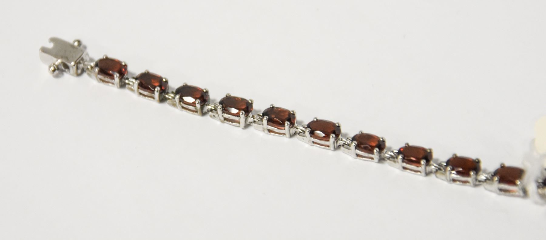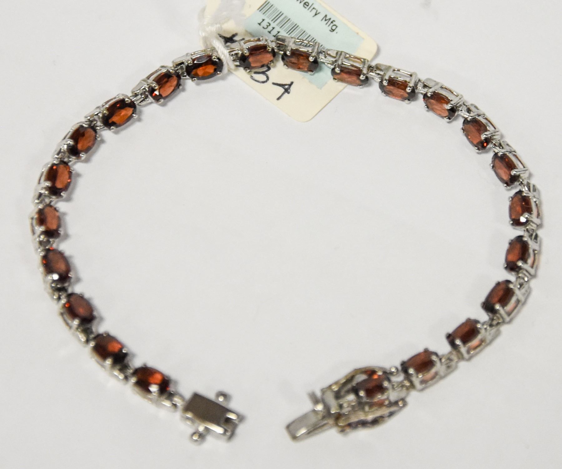 NEW 925 STERLING SILVER BRACLET REAL RED GARNET STONES, RETAIL $360.00, IN 2 TONE PINK & GREY VELVET CASE