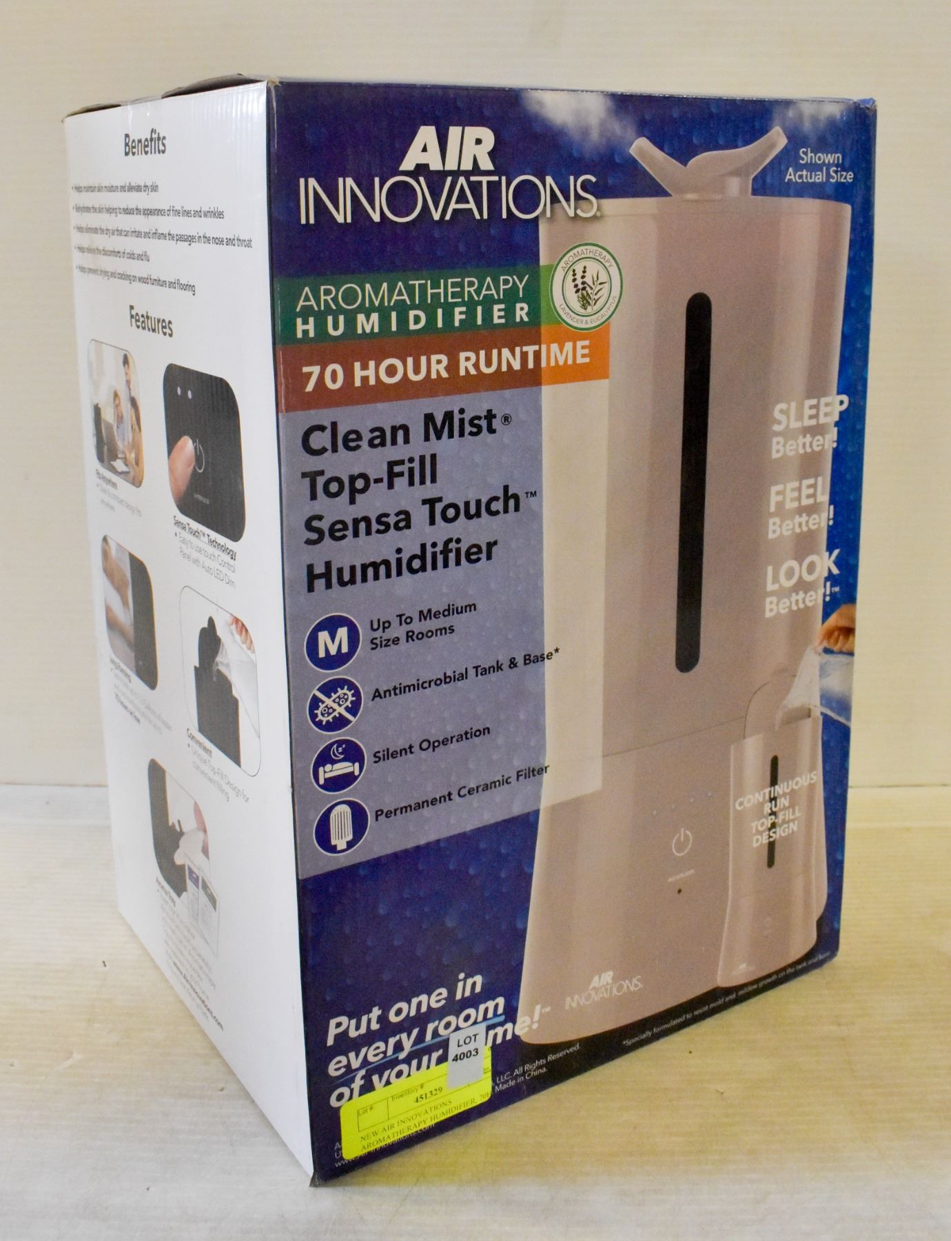 NEW AIR INNOVATIONS AROMATHERAPY HUMIDIFIER, 70HR
