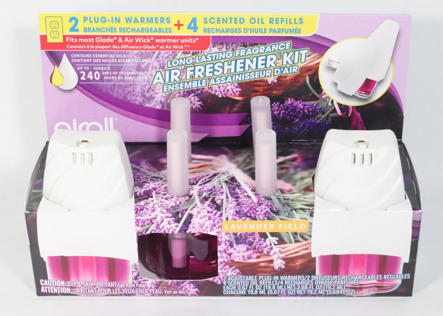 TWO PLUG-INS AND FOUR SCENTED OIL REFILLS. FOR USE WITH MOST GLADE AND AIRWICK WARMERS