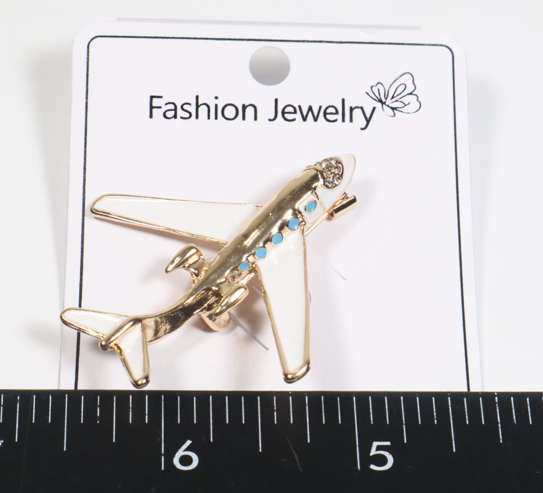 NEW AIRPLANE BROOCH HAS RHINESTONES IN THE WINDOW