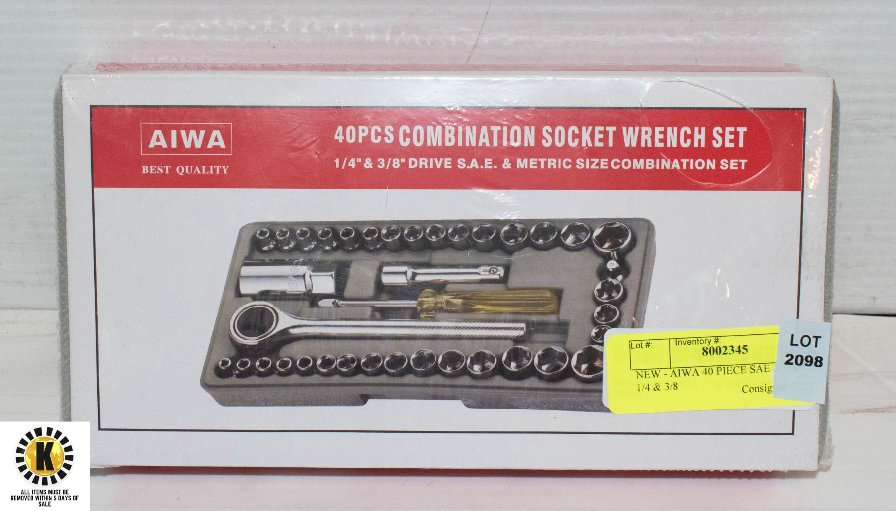 NEW - AIWA 40 PIECE SAE & METRIC 1/4 & 3/8