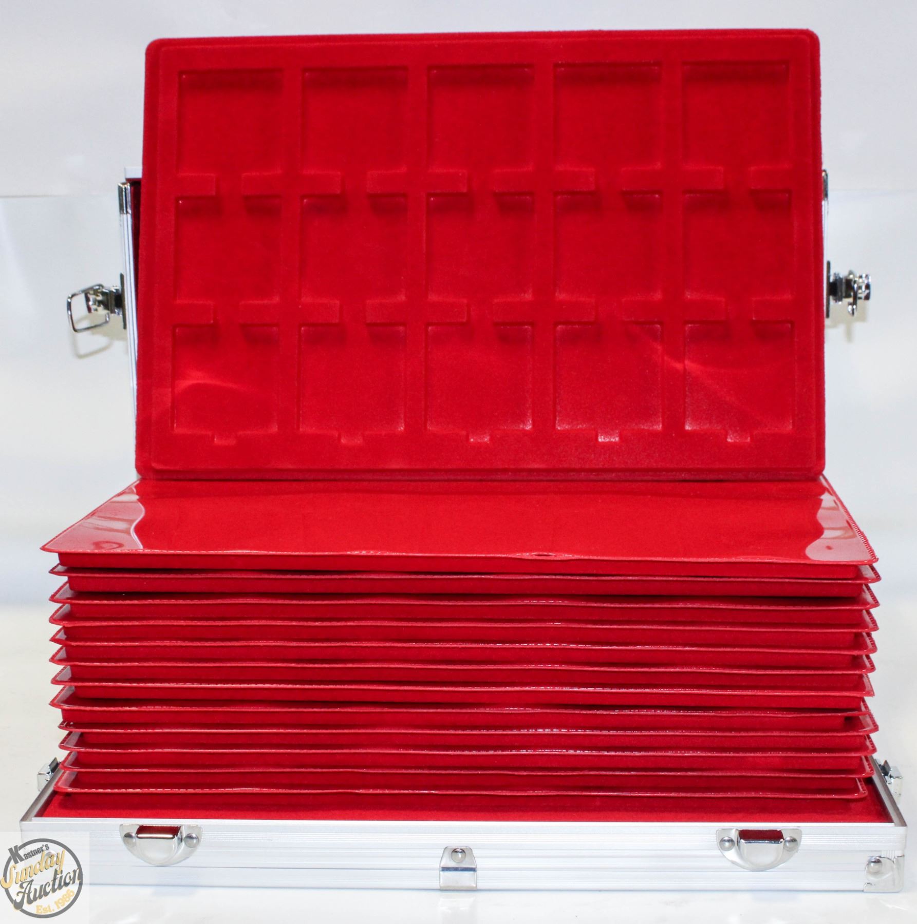 EACH SLOT IS 2" X 2", HARDSHELL ALUMINUM CASE WITH EASY ACCESS WINDOW, COMES WITH KEY. **ALL ITEMS MUST BE REMOVED BY 5PM SATURDAY, MAY 10TH 2025. ALL REMAINING ITEMS WILL BE SUBJECT TO A $6.00 PER DAY STORAGE CHARGE. ANY ITEMS REMAINING AFTER MONDAY, MAY 26TH 2025 WILL BE CONSIDERED FORFEITED. NO REFUNDS WILL BE ISSUED FOR FORFEITED ITEMS. TO SCHEDULE A PICK UP APPOINTMENT CLICK HERE