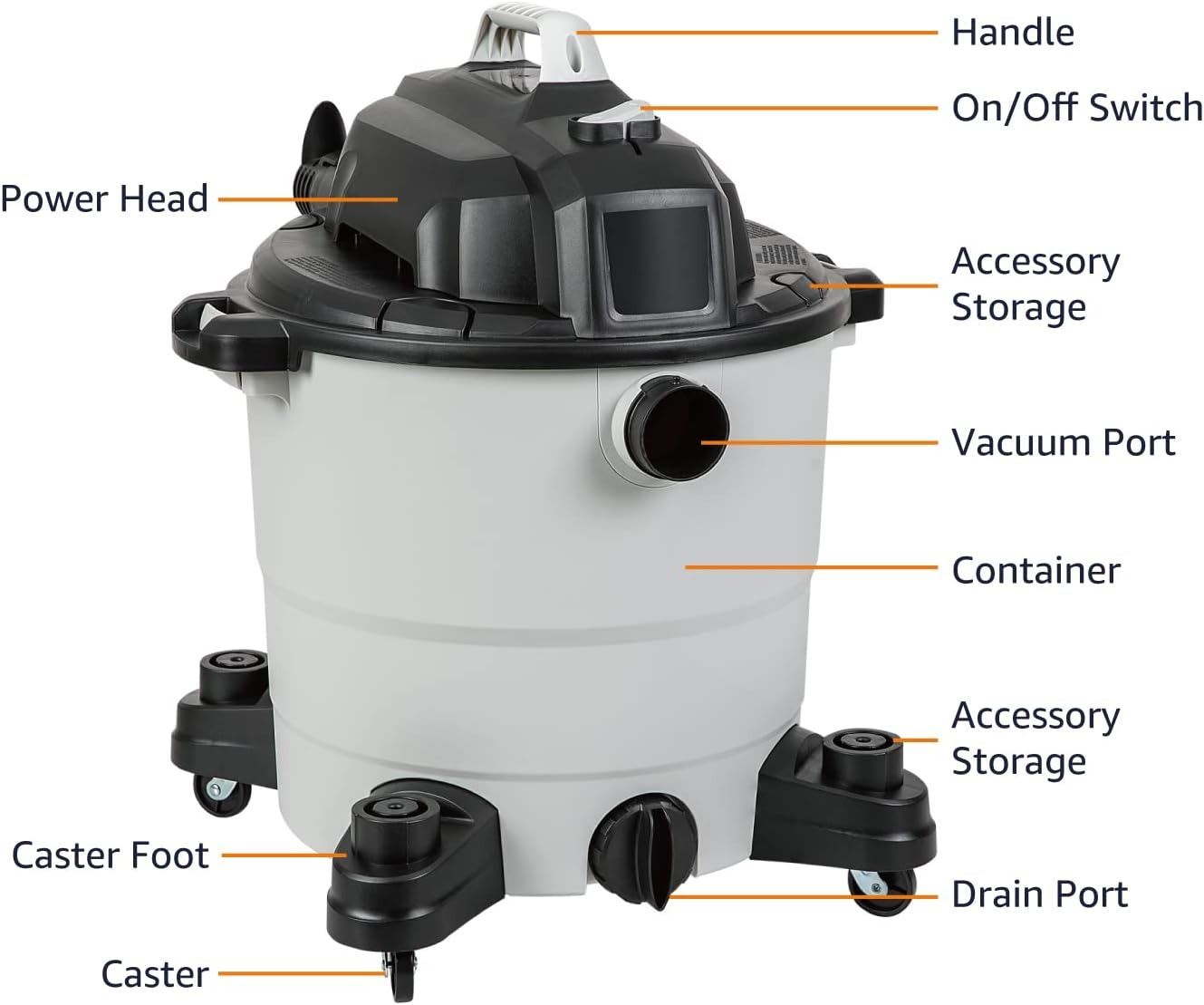 -INCLUDES A 12 GALLON WET/DRY VACUUM MADE OF DURABLE POLYPROPYLENE IN GREY AND BLACK
