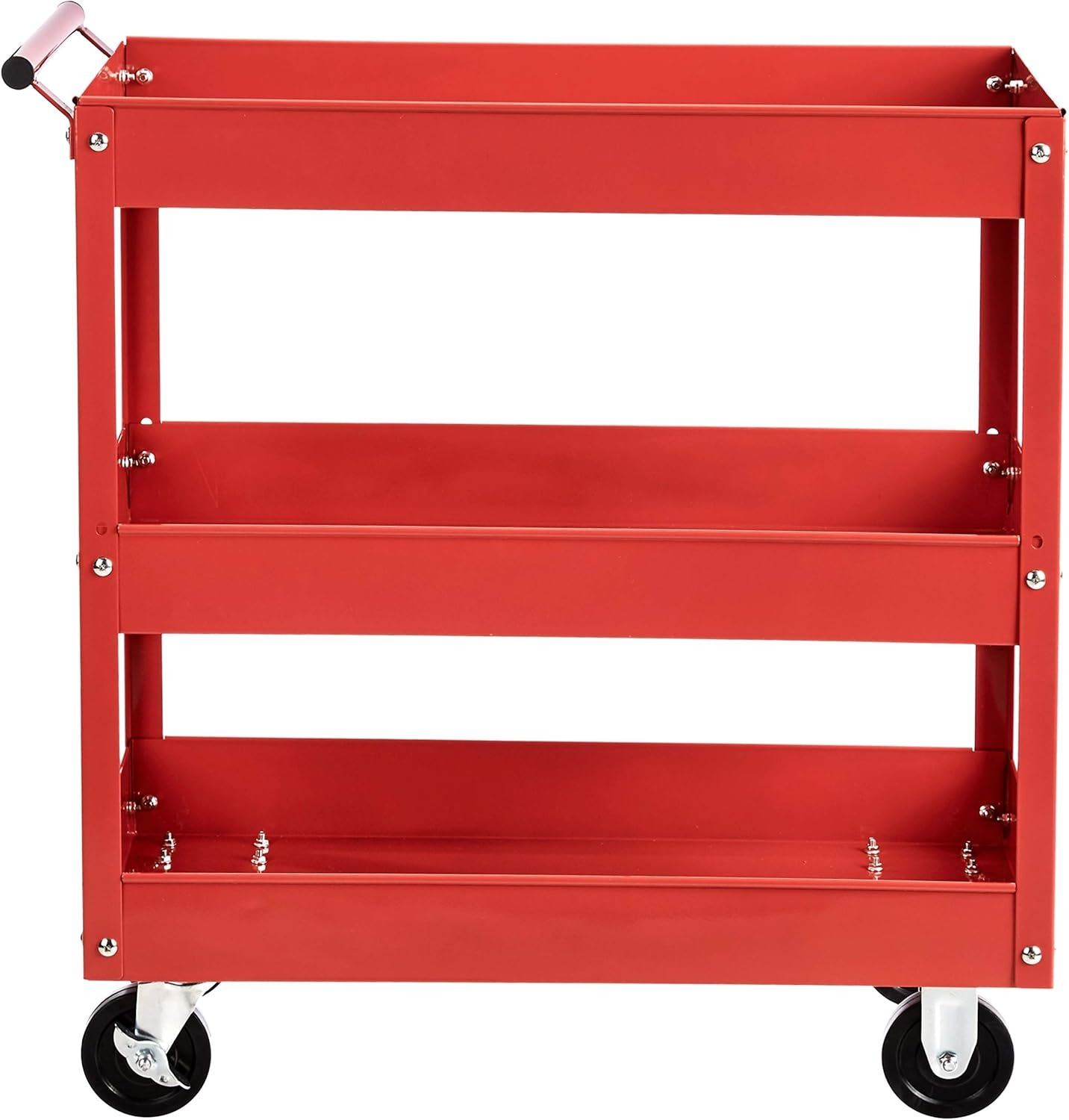 AMAZON BASICS 3-SHELF STEEL UTILITY CART WITH 250 KG CAPACITY - RED