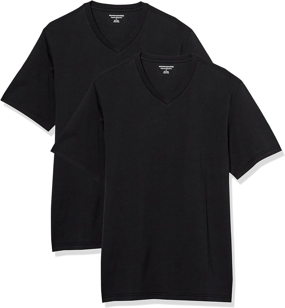 SLEEVE V-NECK T-SHIRT, SIZE 5XL. BLACK. AMZ SES