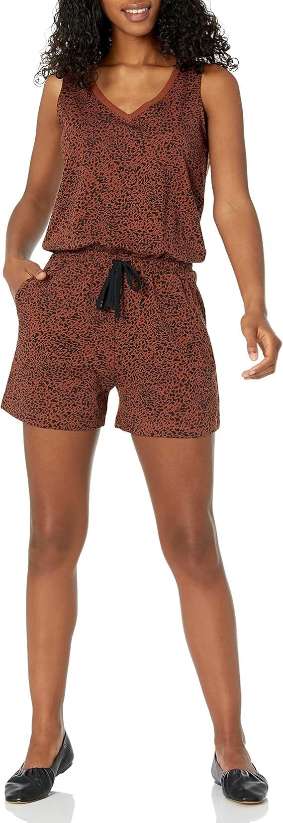 FLEECE ROMPER IN DARK CAMEL/BLACK. SIZE XS. AMZ SES