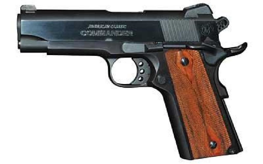 Product Specifications UPC Code: 094922351975 Manufacturer: American Classic Model: American Classic Action: Semi-automatic Type: 1911 Size: Commander Caliber: 45 ACP Barrel Length: 4.25" Frame/Material: Steel Finish/Color: Blue Grips/Stock: Wood Capacity: 8Rd Accessories: 1 Mag Fired Casing: Fired Case Sights: 3 Dot Manufacturer Part #: ACC45B