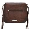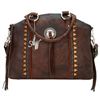 Tribal Trade convertible zip top half-moon tote: 1 Back slip pocket 1 Inside zipper compartment 2 Inside pouches Handle drop length: 6" Adjustable/Detachable shoulder strap Shoulder strap drop length: 20-22" 14" x 10" x 4.5" Flap Messenger Bag : Magnetic closure 1 Front slip pocket 1 Back zipper pocket 1 Inside zipper compartment 2 Inside pockets Adjustable shoulder strap 25-27" Drop length 11" x 10" x 4" Structured Hobo: 1 Back zipper pocket 1 Inside zipper compartment 2 Inside pouches Adjustable shoulder strap 12-15" Drop length 12" x 10" x 5" TRI-WALLET Snap closure Full leather inside Flap for checkbook 13 Card slots 5 Compartments Back zipper coin pocket 7.5" x 4"