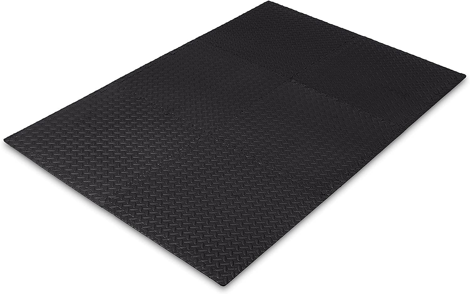 EXERCISE GYM FLOOR MAT TILES, PACK OF 6, BLACK, 24 X 24 X0.5", AMZ SES