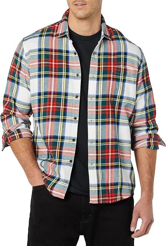 FLANNEL SHIRT, RED/IVORY TARTAN PLAID, AMZ SES