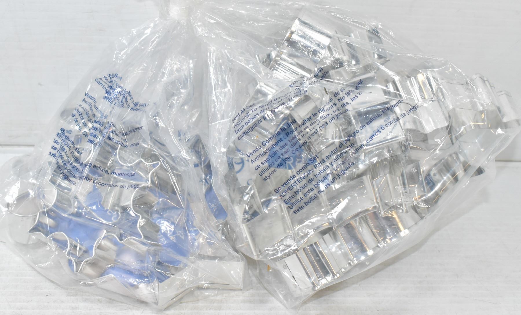 MADE IN THE USA $45 NEW 2 BAGS OF NEW COOKIE CUTTERS RECIPE BOOKS SNOWFLAKES GINGER BREAD MEN ETC 16 TO 18 CUTTERS PER A LOT