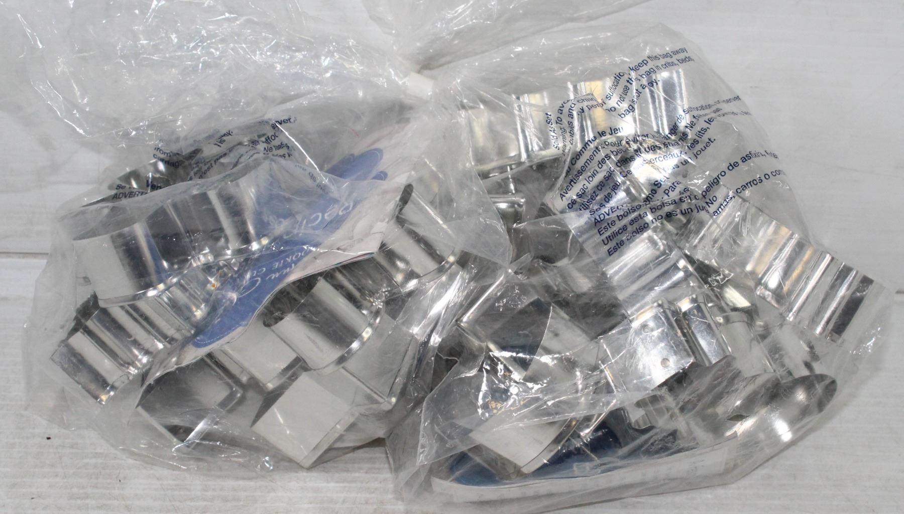 MADE IN THE USA $45 NEW 2 BAGS OF NEW COOKIE CUTTERS RECIPE BOOKS SNOWFLAKES GINGER BREAD MEN ETC 16 TO 18 CUTTERS PER A LOT