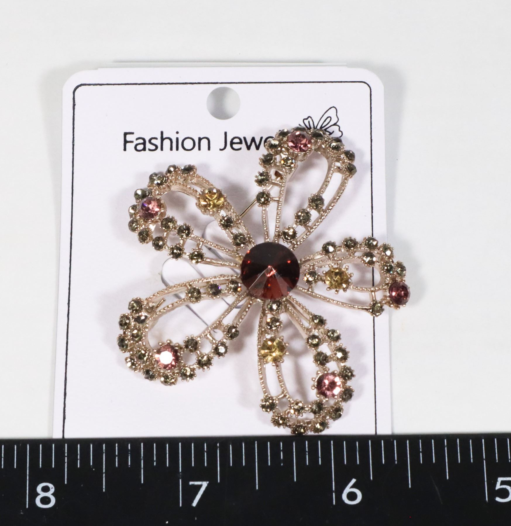 NEW ANTIQUE STYLE RHINESTONE FLOWER BROOCH