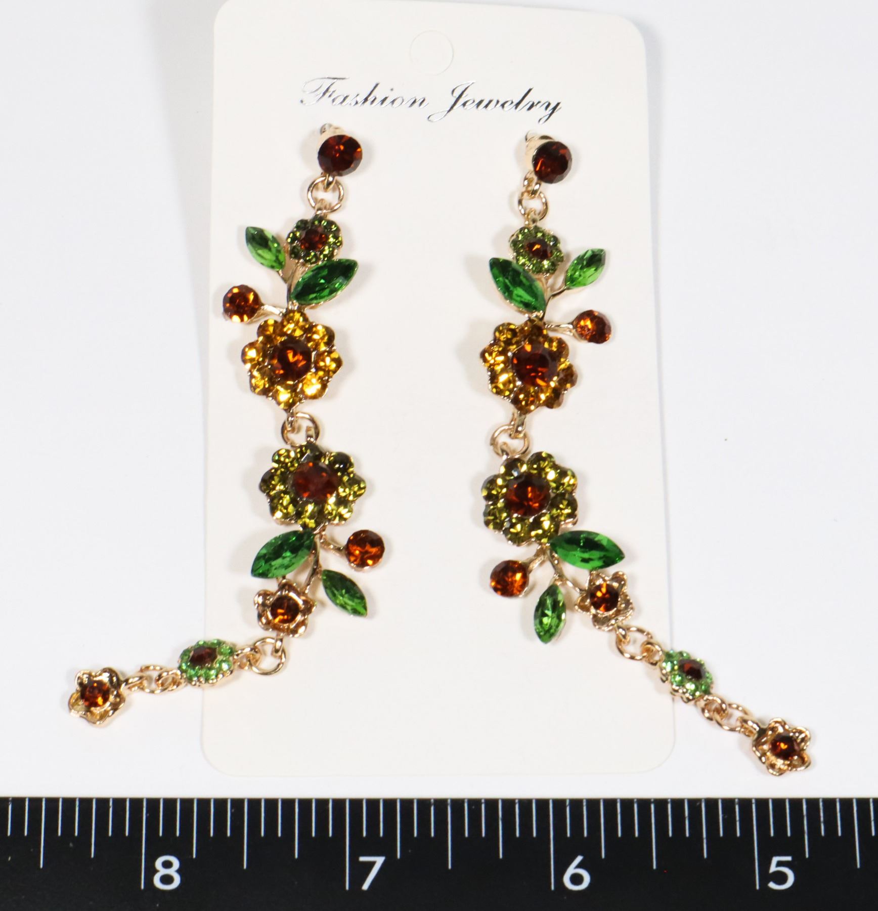 NEW ANTIQUE STYLE RHINESTONE FLOWER DROP EARRINGS