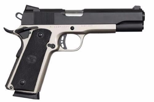 FAMILY:1911 Style Pistol Series MODEL:M1911-A1 Tactical TYPE:Semi-Auto Pistol ACTION:Single Action FINISH:Two Tone STOCK/FRAME:Steel Frame STOCK/GRIPS:Checkered Polymer CALIBER/GAUGE:45 ACP CAPACITY:8+1 # OF MAGS:1 MAGAZINE DESC:8 rd. BARREL:5" OVERALL LENGTH:8.75" SIGHTS:Low Profile Dovetail SAFETY:Frame Mounted ADDL INFO:Extended Beavertail ADDL INFO:Checkered Polymer Grips ADDL INFO:Parkerized Slide/Nickel Frame