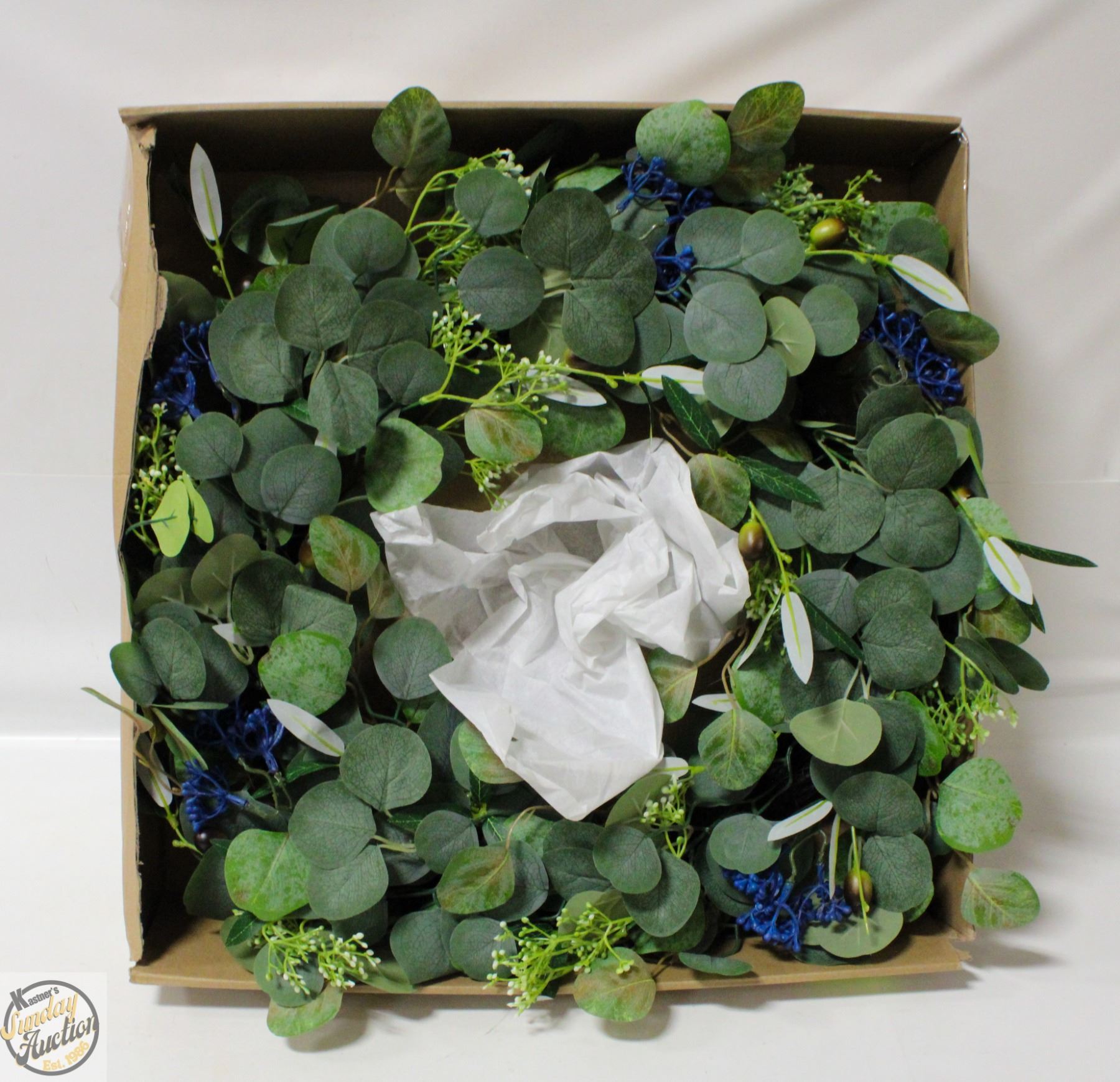 NEW ARTIFICIAL WREATH WITH BLUE BUDS AND OLIVES