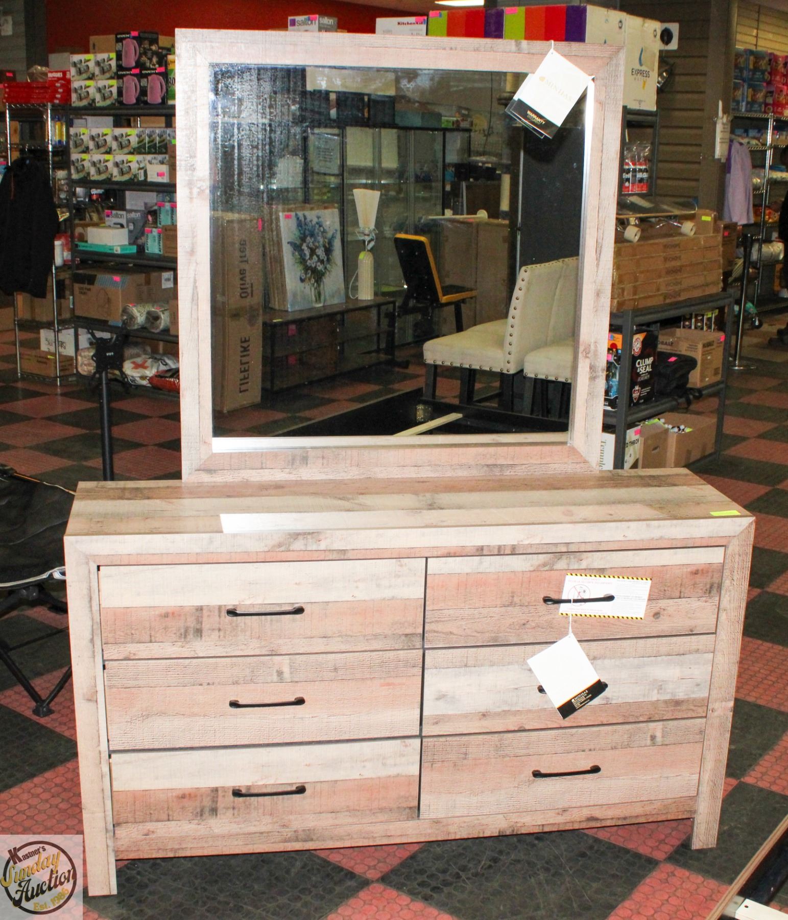 BEDFRAME + DRESSER WITH MIRROR + BEDSIDE TABLE AMZ SES **ALL ITEMS MUST BE REMOVED BY 5PM SATURDAY, AUGUST 23RD 2025. ALL REMAINING ITEMS WILL BE SUBJECT TO A $6.00 PER DAY STORAGE CHARGE. ANY ITEMS REMAINING AFTER MONDAY, SEPTEMBER 8TH 2025 WILL BE CONSIDERED FORFEITED. NO REFUNDS WILL BE ISSUED FOR FORFEITED ITEMS. TO SCHEDULE A PICK UP APPOINTMENT CLICK HERE
