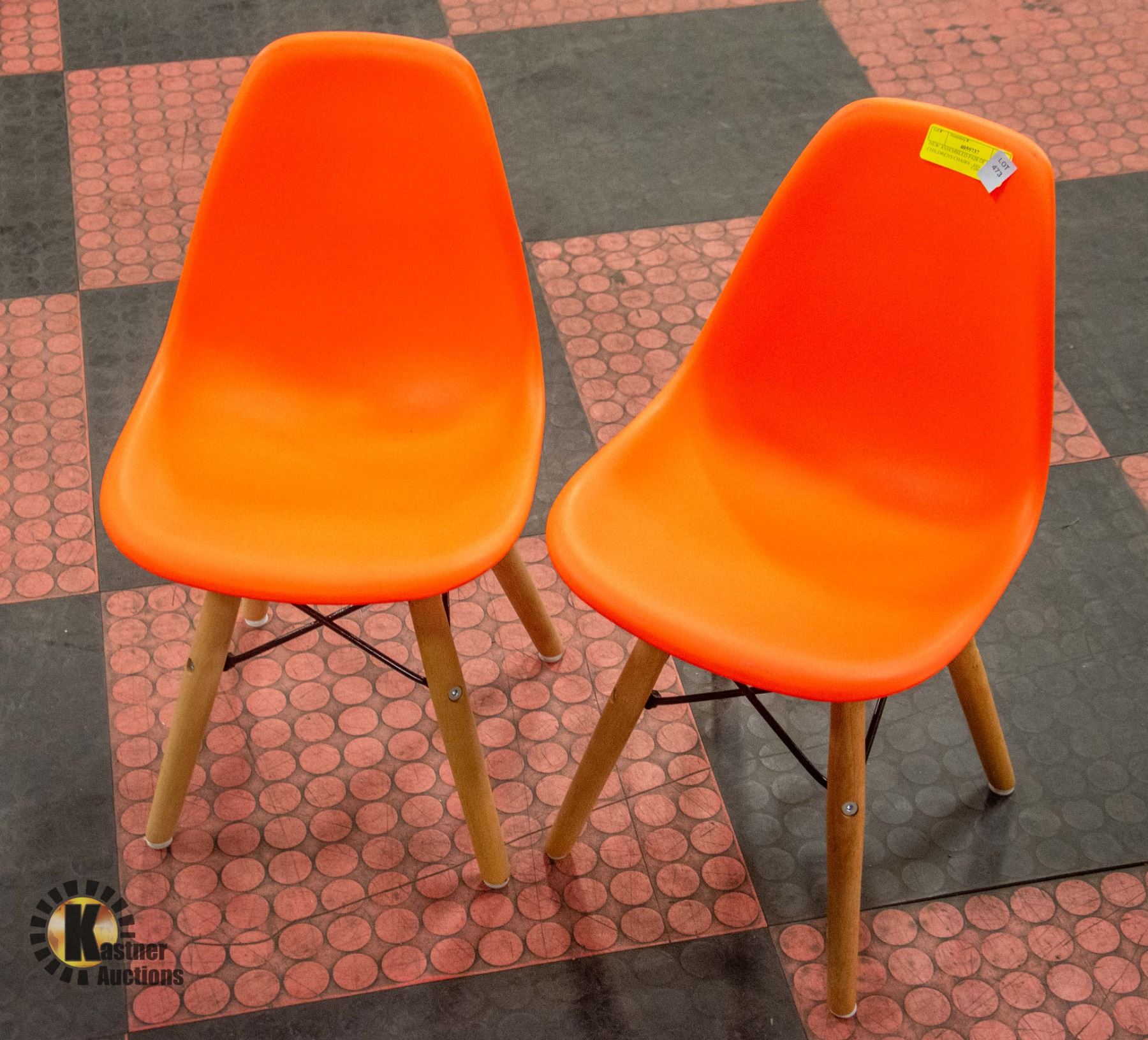 ORANGE PLASTIC SEATS WITH A MODERN WOOD LEG - EASY CLEANING - AMZ SES **ALL ITEMS MUST BE REMOVED BY 5PM SATURDAY, DECEMBER 14th 2024. ALL REMAINING ITEMS WILL BE SUBJECT TO A $6.00 PER DAY STORAGE CHARGE. ANY ITEMS REMAINING AFTER MONDAY, DECEMBER 30TH 2024 WILL BE CONSIDERED FORFEITED. NO REFUNDS WILL BE ISSUED FOR FORFEITED ITEMS. TO SCHEDULE A PICK UP APPOINTMENT CLICK HERE