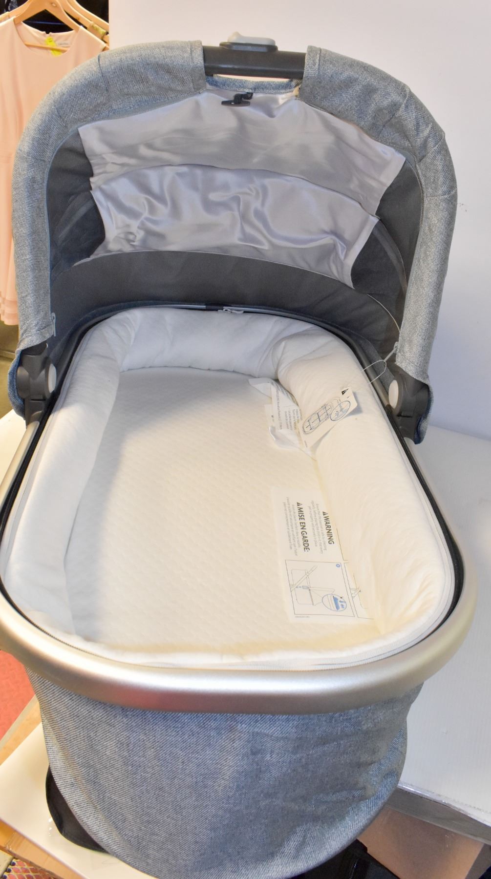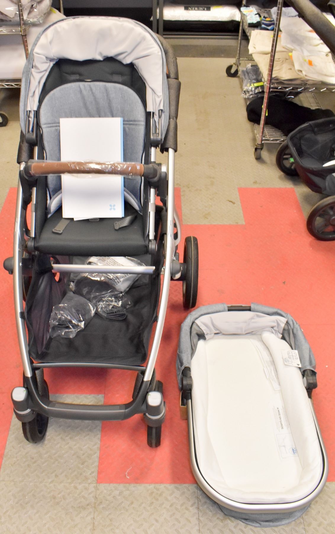 SET INCLUDES: STROLLER, BASSINET, RAIN SHEILD/BUG SHEILD. COMPATIBLE W/ MESA INFANT CAR SEAT NO ADAPTORS REQUIRED. IMPROVED SUSPENSION. EXTRA LARGE BASKET W/ 30 LB WEIGHT LIMIT. ACCOMODATES UP TO 50 LB CHILD. MSRP$ 1445. HBC SES