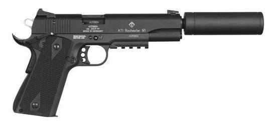 Mfr Items:GSG German Sports Guns Category:PISTOLS Mfr Scan:GSG Model:GSG-1911 Series:22LR Action:Single Caliber:22 Long Rifle Barrel Length:5.0" Capacity:10+1 Safety:Manual Thumb/Grip Grips:Black Synthetic Sights:Fixed Weight:37.7 oz Frame Finish:Black Hard Coat Anodized Frame Material:Zinc Alloy Barrel Type:Fake Suppressor Slide Description:Black Zinc Alloy