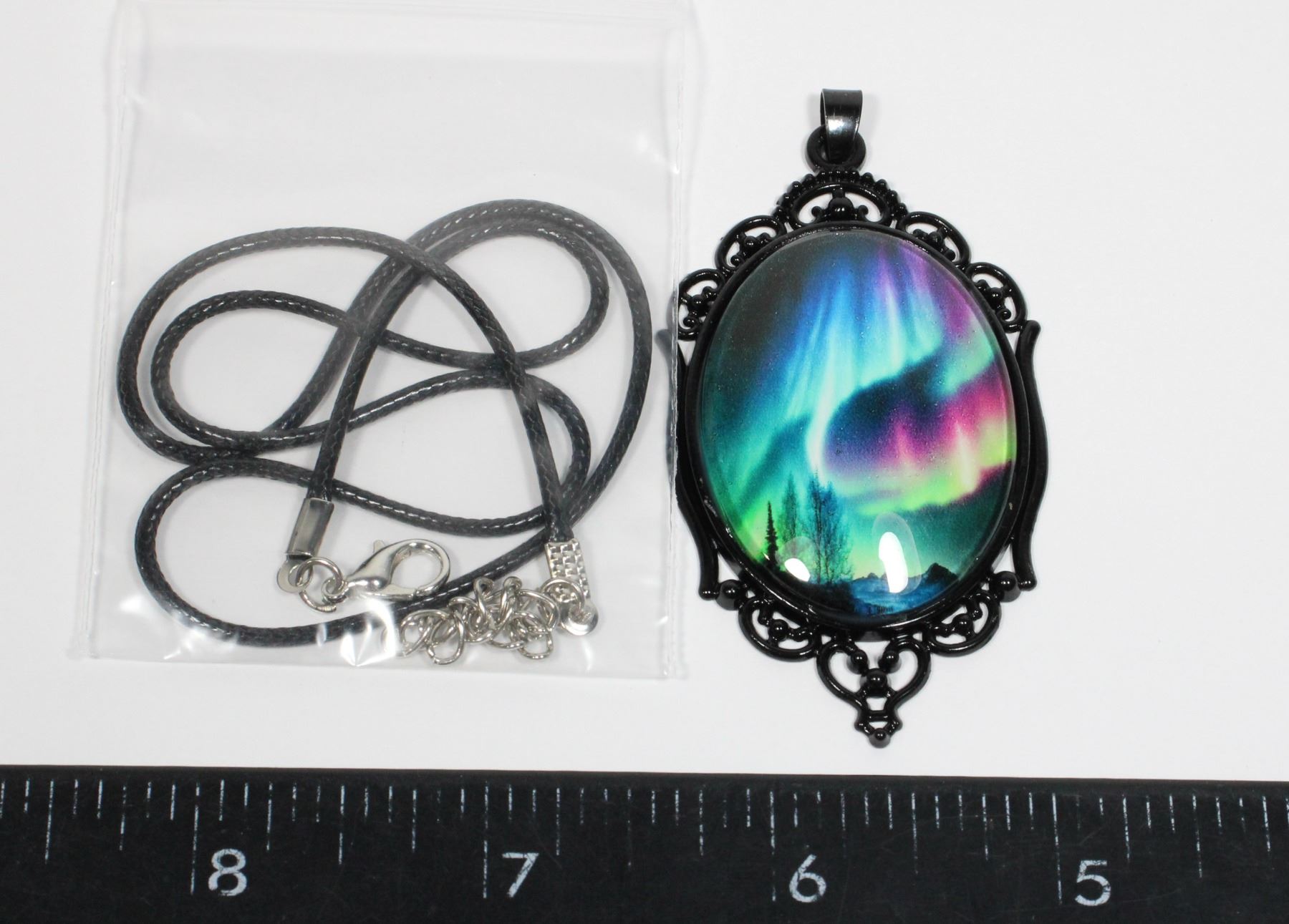 NEW AURORA BOREALIS PICTURE PENDANT AND FAUX