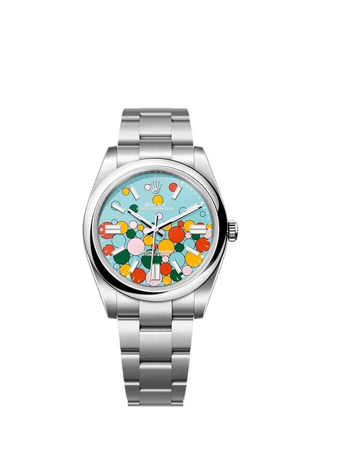 2023 OYSTER PERPETUAL 41MM 124300 TURQUOISE CELEBRATION DIAL OYSTER BRACELET. BOX, TAG, PAPERS, BAG, ALL INCLUDED.THIS TIMEPIECE IS AN EXACT REPLICA OF THE ORIGINAL TIMEPIECE.
