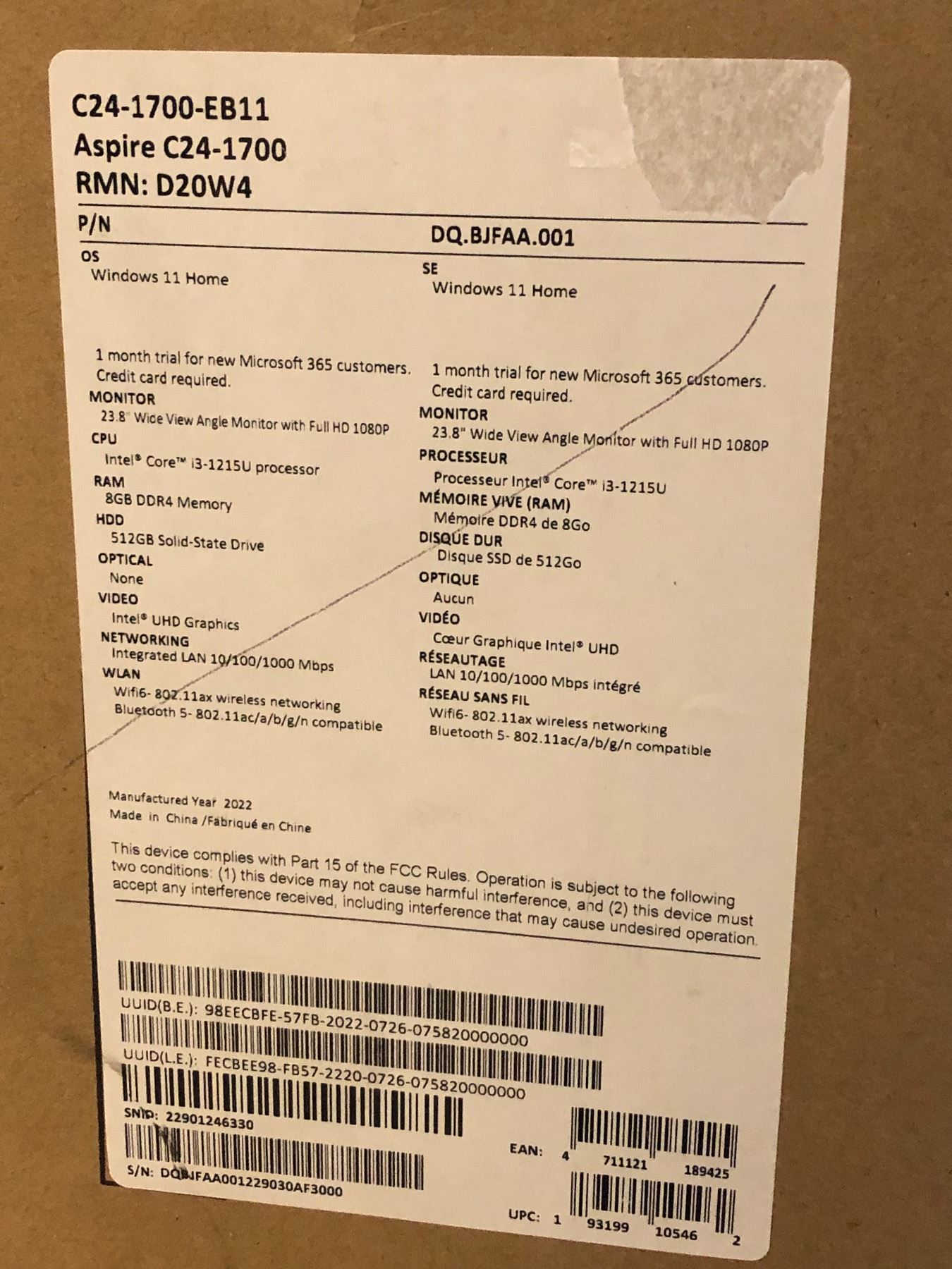 NEW Acer Aspire C24-1700 All-in-one Computer 23.8" Wide View FHD monitor - i3 CPU, 8GB DDR4, 512GB SSD, Intel UHD Graphics (new in box)