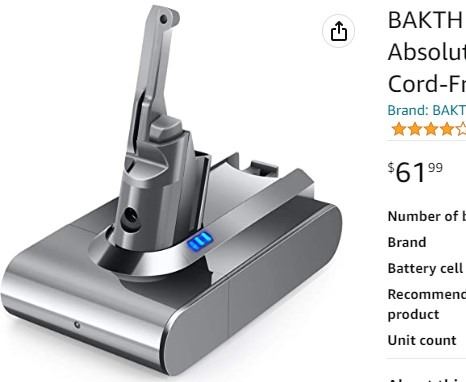 BATTERY FOR DYSON V8 SERIES ABSOLUTE CORDLESS VACUUMS. RETAILS FOR $61.99
