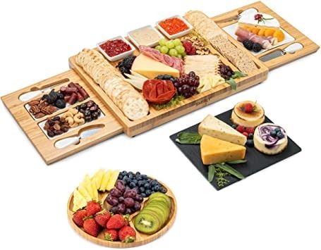 NEW BAMBOO CHEESEBOARD WITH CUTLERY & WINE OPENER