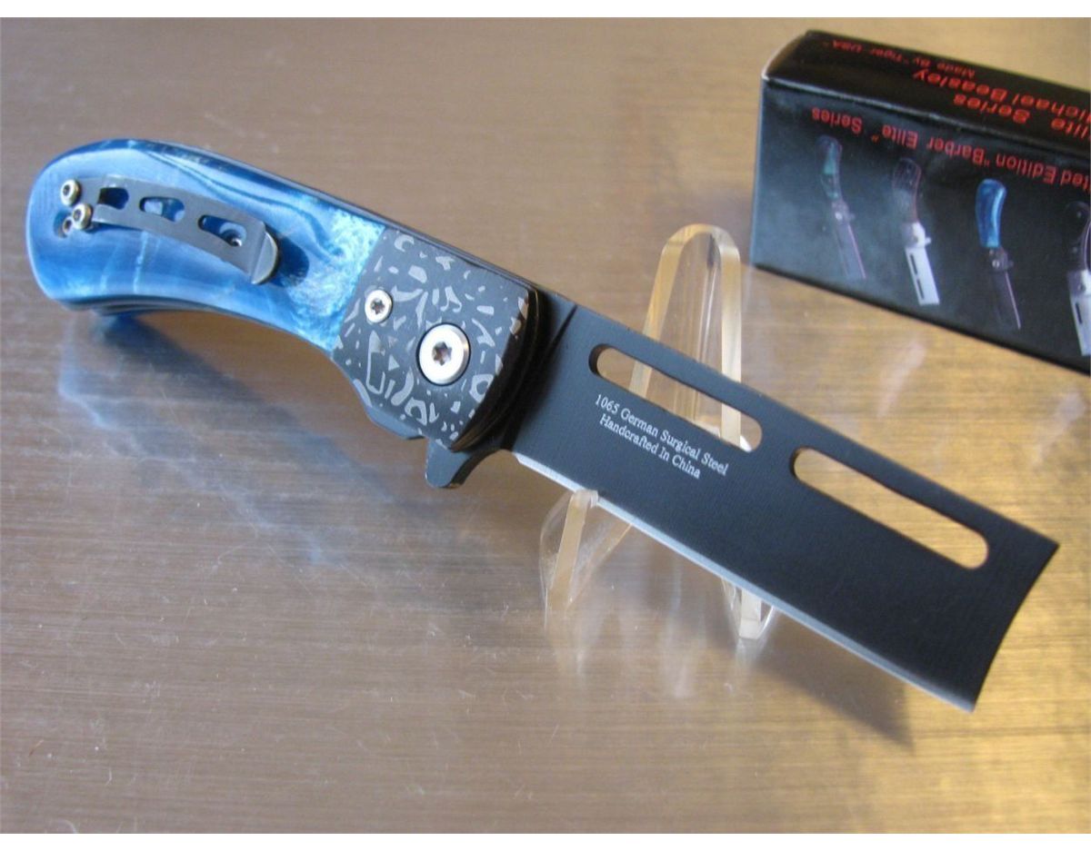 NEW BARBER'S ELITE STRAIGHT RAZOR BLUE PERLEX KNIFE
