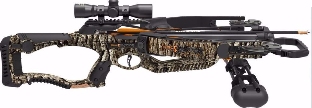 Mfr Items:Barnett Crossbows Category:ARCHERY AND ACCESSORIES Model:Buck Commander Barnett just keeps giving hunters more from its Buck Commander line of crossbows, now introducing a reverse draw configuration in the BC Raptor Reverse Draw Crossbow Package. This innovative design moves the limb pockets closer to the trigger assembly to shift the center of gravity closer to the shooter's body for a better balanced shot every time. This new layout does not sacrifice on performance, sending bolts towards your targets at 330 fps with 97 ft. lbs. of kinetic energy on contact. This lightweight 6.5 lb. crossbow combines a strong Carbonlite riser with laminated limbs and precision machined aluminum flight track for great performance that does not weigh you down. The lightweight composite stock features a pass-through foregrip with finger reminders for sure control and handling in the field. Patented Anti Dry Fire Trigger has a spring loaded redundant safety bar that remains in place until the arrow is seated properly. Adjustable butt pad for comfort. Length: 31.7". Axle-to-axle width: 17.25". Draw weight: 155 lbs