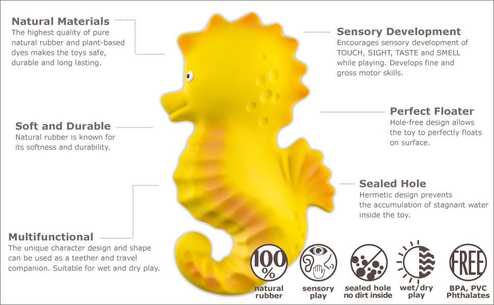 NEW BATH TOY NATURAL RUBBER SEAHORSE