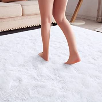 NEW BEDSURE 4FT X 5.3FT FLUFFY WHITE AREA RUG