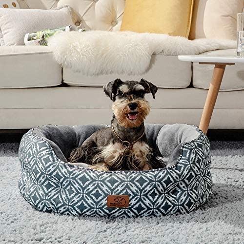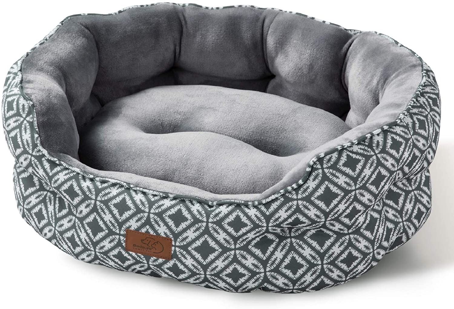 CUSHION, DOUBLE SIDED CUSHION, 6' HIGH SIDE WALLS, 3" HIGH ENTRY WAY, ROUND SHAPE, APPROX. 17", GREY AND WHITE PATTERNING, WASHABLE, ANTI-SLIP BOTTOM