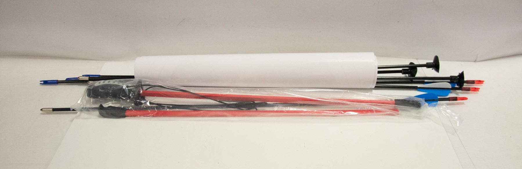 6 ARROWS, (3 METAL ENDS/3 SUCTION ENDS), INCLUDES TARGET SHEETS, BOW STRING, AMZ SES **ALL ITEMS MUST BE REMOVED BY 5PM SATURDAY, DECEMBER 3RD, 2022. ALL REMAINING ITEMS WILL BE SUBJECT TO A $6.00 PER DAY STORAGE CHARGE. ANY ITEMS REMAINING AFTER MONDAY, DECEMBER 18TH, 2022 WILL BE CONSIDERED FORFEITED. NO REFUNDS WILL BE ISSUED FOR FORFEITED ITEMS. TO SCHEDULE A PICK UP APPOINTMENT CLICK HERE