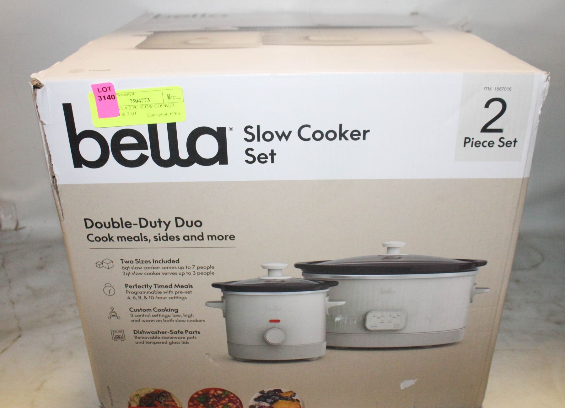 NEW BELLA 2 PC SLOW COOKER SET, 6QT & 2 QT