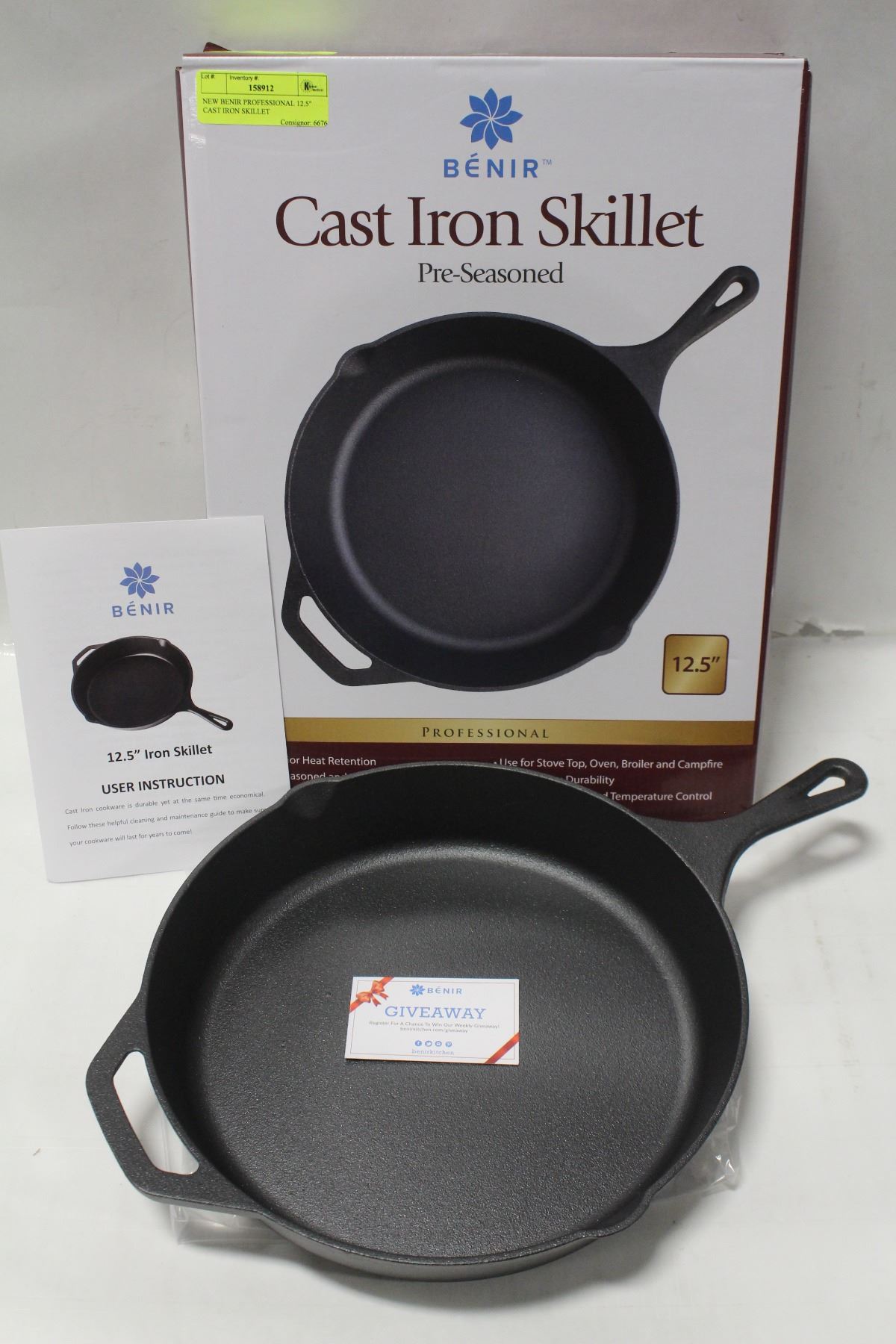 PRE-SEASONED CAST IRON PAN. NEW IN-BOX. SUPERIOR HEAT RETENTION,FAST EVEN HEATING & TEMPERATURE CONTROL, HANDLE LOOP FOR HANGING / STORAGE, PRE-SEASONED & READY TO USE, LONG LASTING DURABILITY, USE FOR STOVETOP / OVEN / BROILER AND CAMPFIRE.