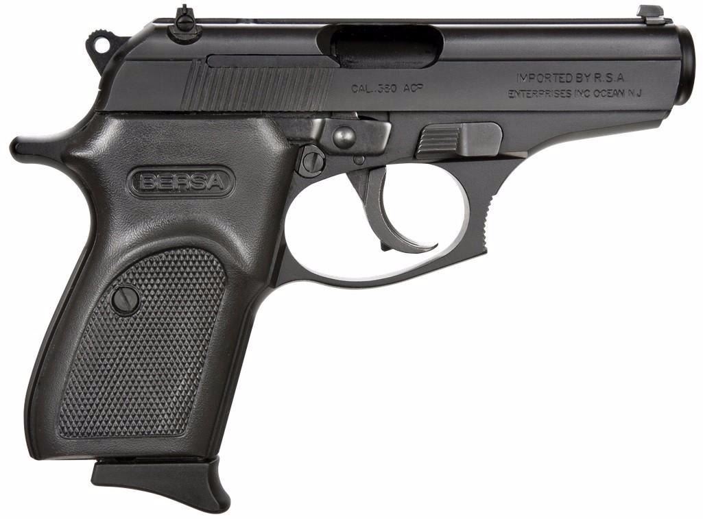 Mfr Items:Bersa Category:PISTOLS Action:Single/Double Caliber:380 Automatic Colt Pistol (ACP) Barrel Length:3.5" Capacity:7+1 Safety:Manual Grips:Crimson Trace Laser Sights:3-Dot Dovetail Weight:20 oz Frame Finish:Black Frame Material:Steel Barrel Type:Steel Alloy Slide Description:Black